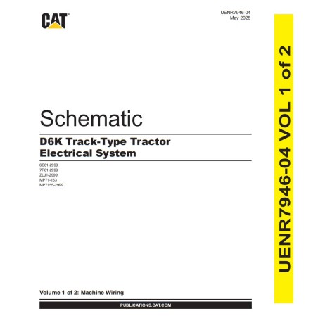 Este produto digital contém o esquema elétrico completo e detalhado do Trator de Esteiras Caterpillar D6K, referência UENR7946. O material está dividido em dois volumes para uma cobertura completa de todos os sistemas elétricos da máquina.