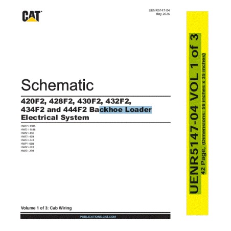 Manual técnico PDF (UENR5147-04) do Sistema Elétrico para Retroescavadeiras CAT Série F2 (420F2 a 444F2). Cobre números de série HWC, HWS, HWR, HWP, HWG, HWE, HWN, HWD. Produto 100% digital com envio automático por download.