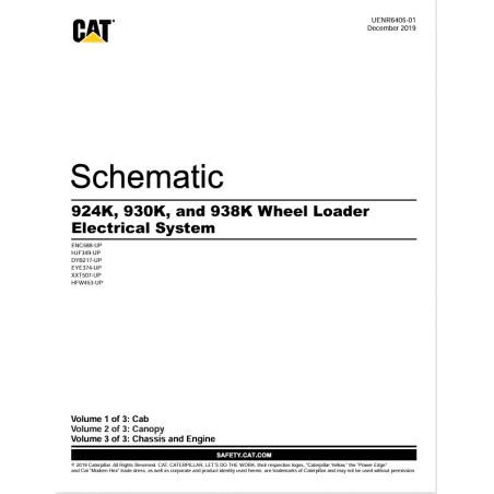 Este é o esquema elétrico interativo oficial, número UENR6405-01, datado de Novembro de 2015, para as Carregadeiras de Rodas Caterpillar 924K, 930K e 938K.